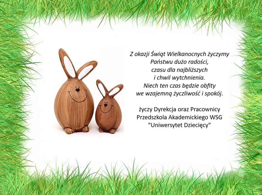 życzy Dyrekcja oraz Pracownicy Przedszkola Akademickiego WSG "Uniwersytet Dziecięcy"